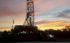 Next comes the part that every petroleum geologist enjoys the most! Drilling the hole! It has now been several months since the geologist started working on his prospect. Now the land owners have been paid for the leaes, permits acquired, and money allocated. Roads and the drilling location have been built, and pipe and supplies have been ordered. Also, the energy company has engaged a drilling contractor who owns and operates the drilling rig.